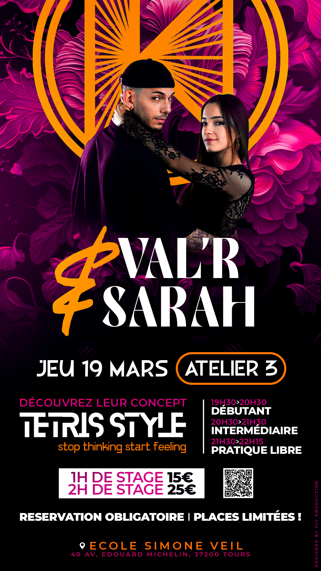 ++ Des ateliers spécifiques : 5 ateliers thématiques avec les profs internationaux Val’R & Sarah (Paris) — Créateur du concept Le Tetris Style - Une danse centrée, structurée et libre. (1 fois tous les 2 mois.)