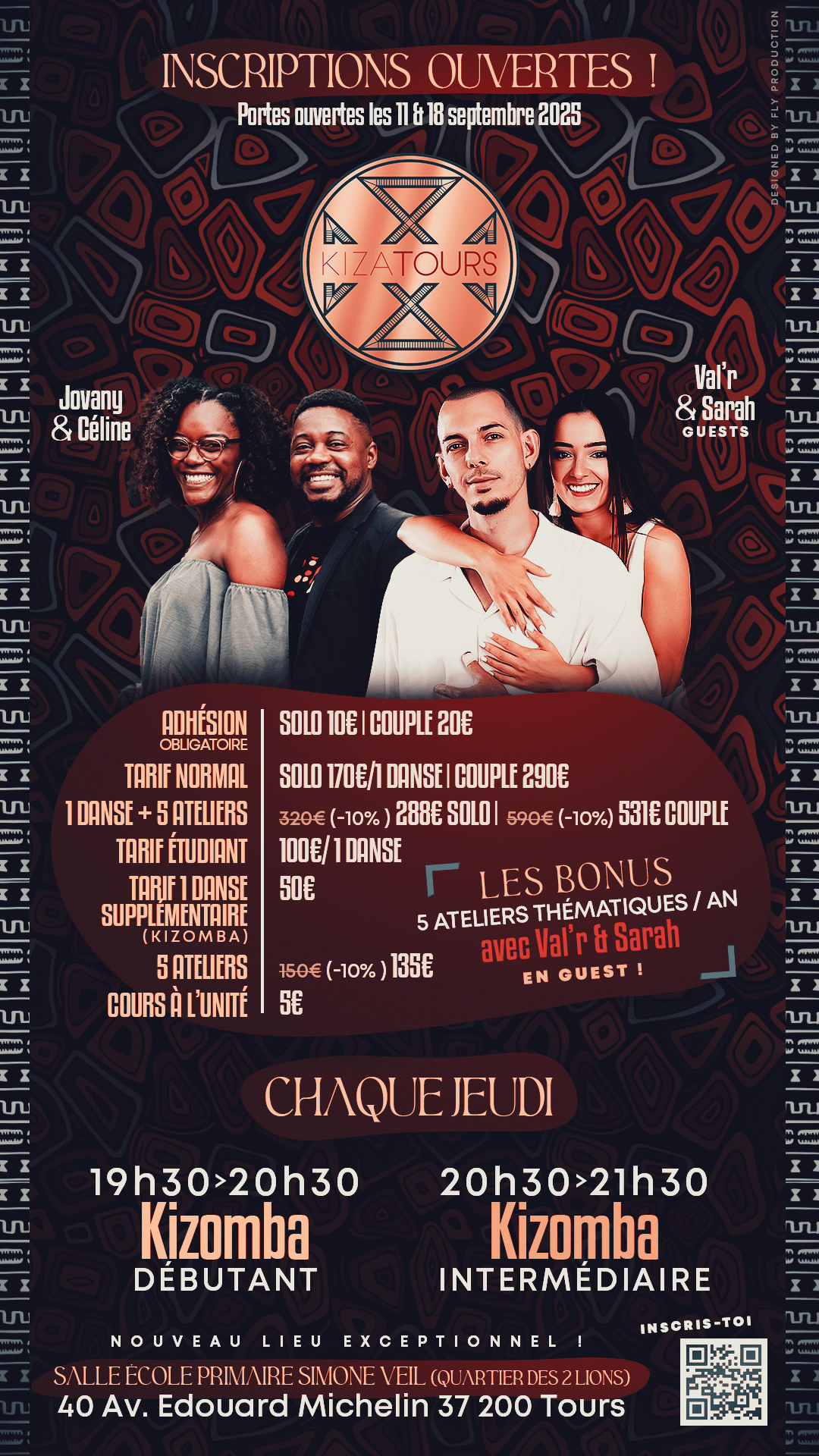 Apprenez la kizomba à Tours avec Kizatours : cours pour débutants et confirmés, professeurs expérimentés, ateliers thématiques avec Val' et Sarah.